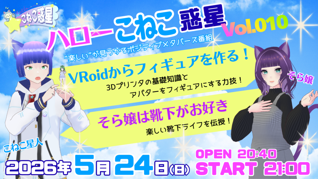 clusterで毎月お送りするポジティブメタバース番組! メンバーそれぞれの好きなことや気になることをジャンルレスで紹介します。 🌟出演者🌟 mimido、塩辛 🌟特集1🌟メンバーインタビュー2026 塩辛編 こねこ惑星ではメンバーにインタビューをして人となりや魅力を知っていただくという企画があるのですが、塩辛がメンバーになってからインタビューのタイミングを失い続けていました… そこで、ハローこねこ惑星の番組内で塩辛に公開インタビューをいたします。 インタビュアーはmimidoです。 🌟特集2🌟グランピング体験レポート グランピングとは「手ぶらキャンプ」とも呼ばれるものですが、まだまだ知らない方や未体験の方も多いのでは? 塩辛が実体験をもとにグランピングの魅力をお伝えい […]