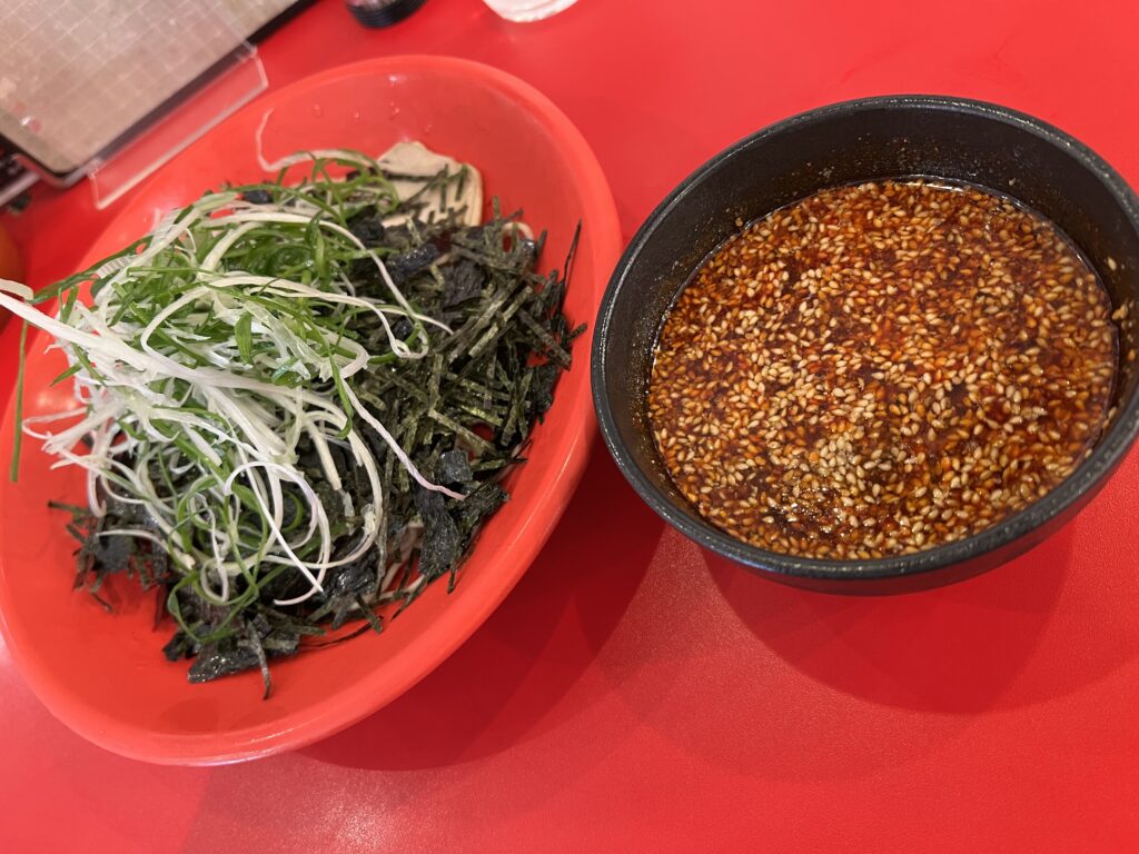 ばくだん屋の特徴は醤油ベースのつけだれ以外にゴマだれベースを選べるという点でしたが、執筆時点ではゴマだれが別料金となっていました。