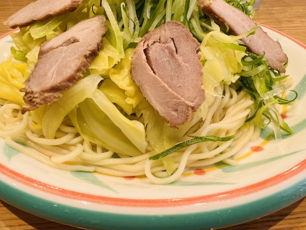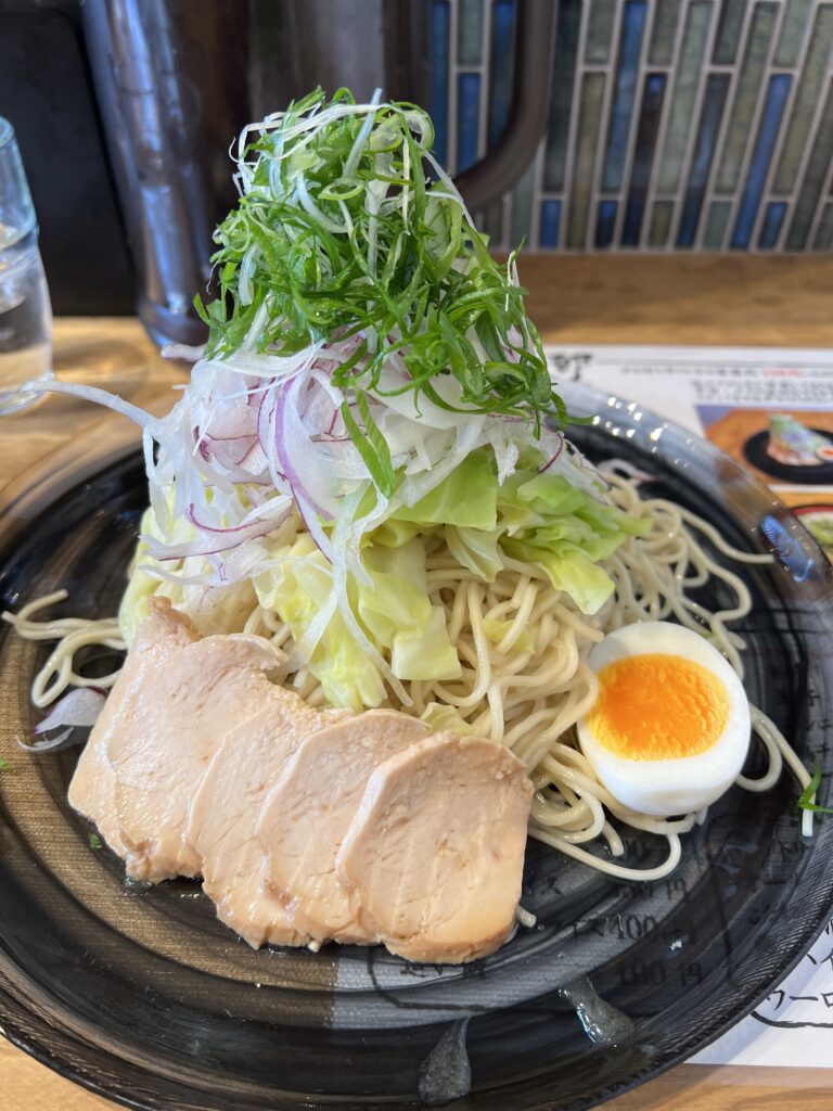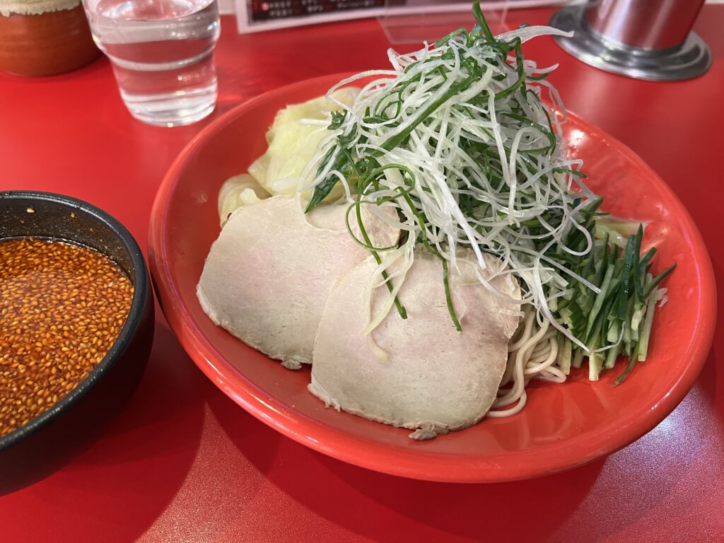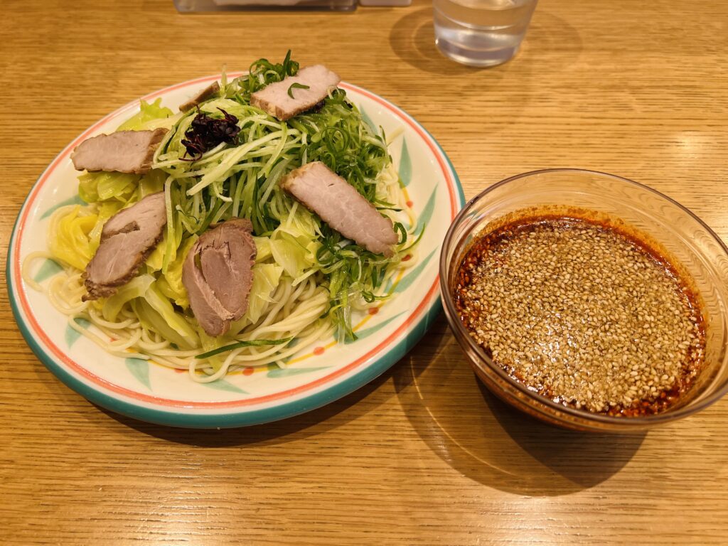 こちらも麺は芯を感じるくらいの固茹でであり、つけだれは少し塩味が強めなのでヤンチャな印象がありましたが、お野菜にはよく合うバランスに思えました。