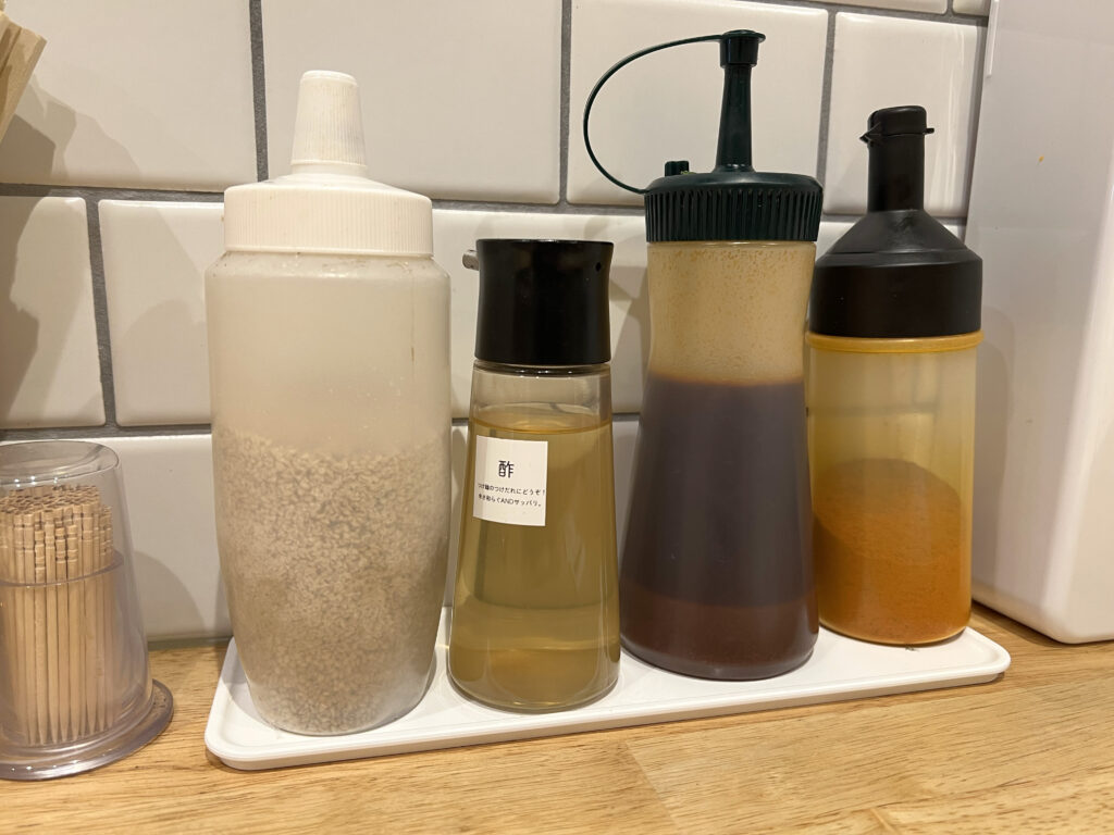 広島つけ麺という料理の特性上、卓上調味料で後から辛さを増やせるのがとても嬉しいです。