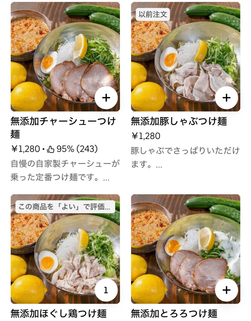 私の居住地では、つけ麺のデリバリーが一番安いのもここなので、安くて美味しいなら最高じゃんとリピートしまくっています。