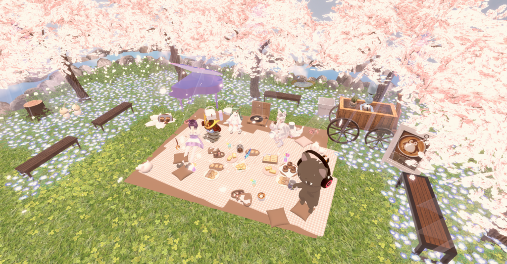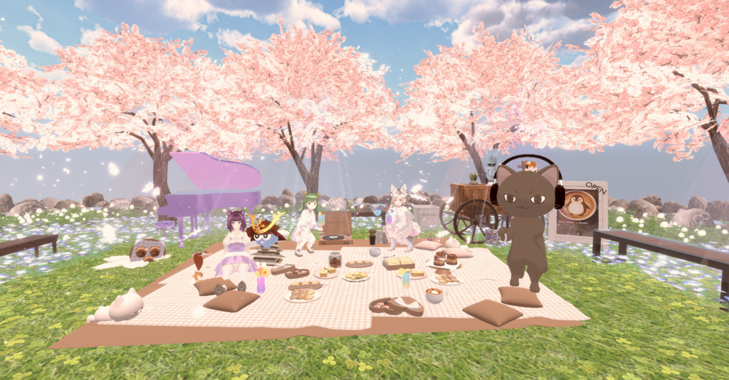 毎回、こねこ惑星メンバーの誰かがアテンドを務め、お気に入りのワールドを巡り、みんなで交流したり写真を撮ったりしています。