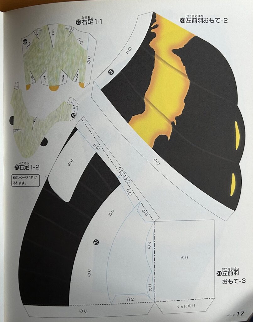 くもんのペーパークラフトはこのような全体図が掲載されています。