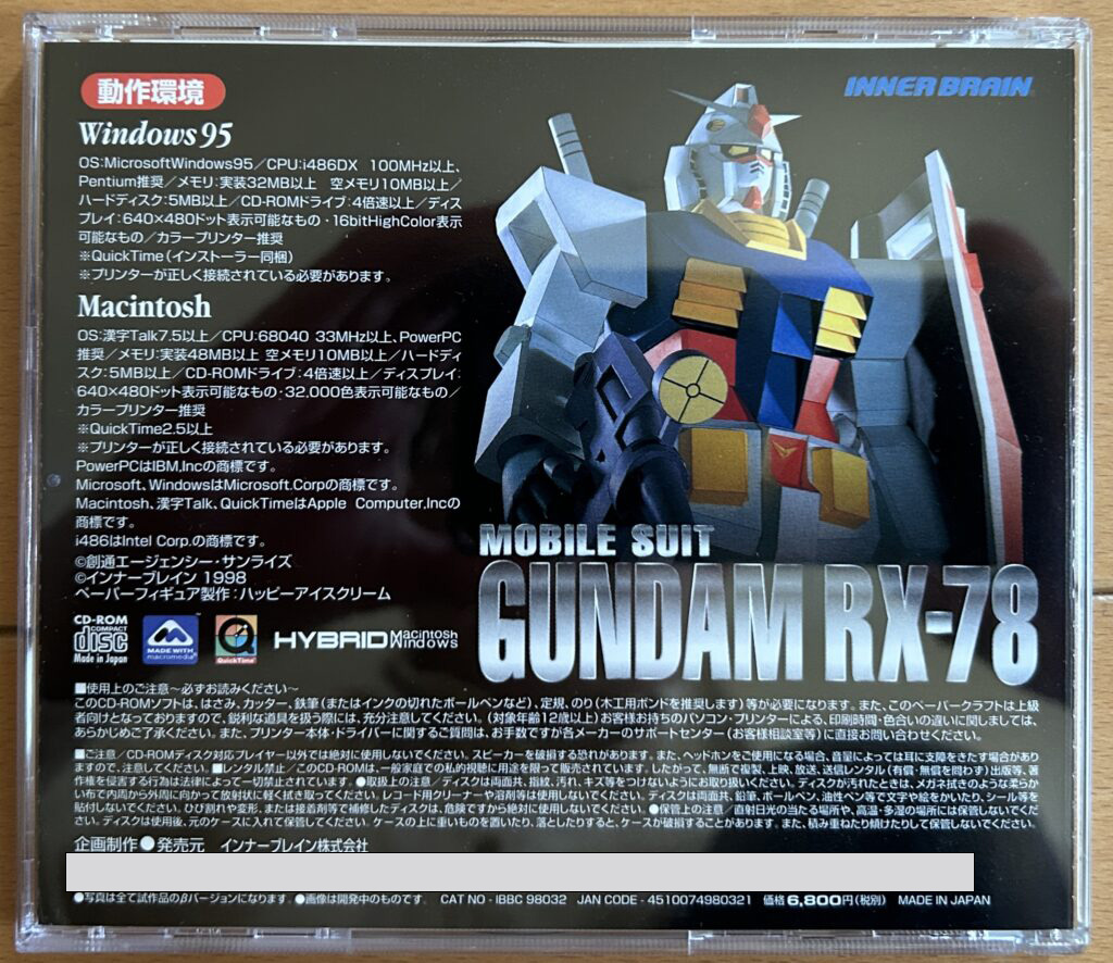 このCD-ROMを使えば人間大のガンダムのペーパークラフトを作る事も可能です。