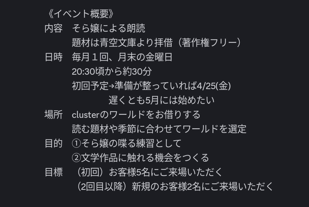 しかも…もしかしたら、朗読でclusterのイベントができるのでは…?