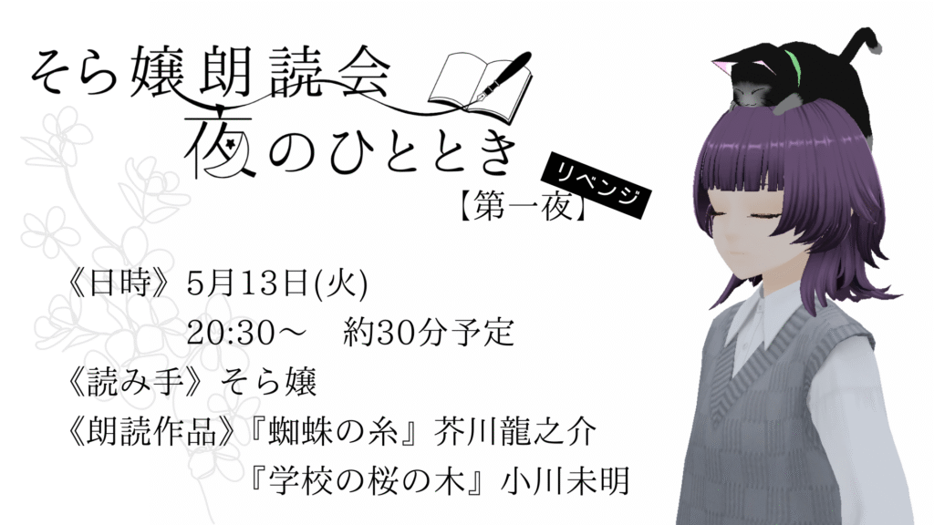 ということで、「そら嬢朗読会 夜のひととき【第一夜リベンジ】」を開催しました!
