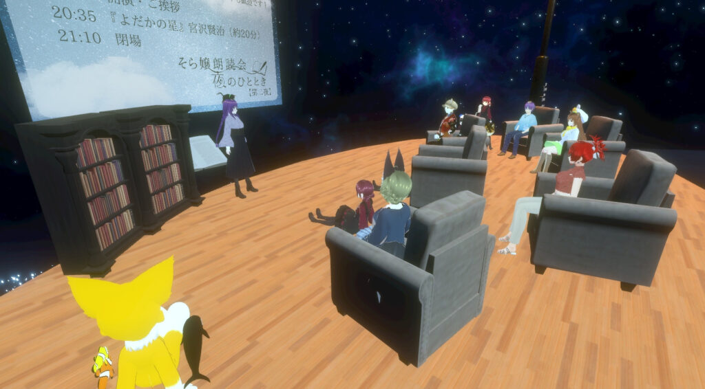 出張版ではバーチャル広島駅の屋上、ソラモア広場のワールドを使用して、広島に縁のある作家さんの作品を読む予定です。