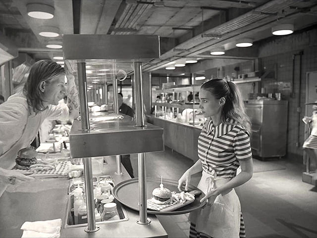モノクロ映像ならではの荒んだ雰囲気、古めかしい空気感で幕を開ける本作。英語とスペイン語がぶつかりながら、どこかぎこちない人同士のやり取りが、厨房で仕事をする陽気な移民たちのしぐさで吹き飛ばされてきます。どこかオープンな画角からは古さのようなものを感じさせる、人物をどのように描いていくのか、見るものに興味を植え付けていきます。