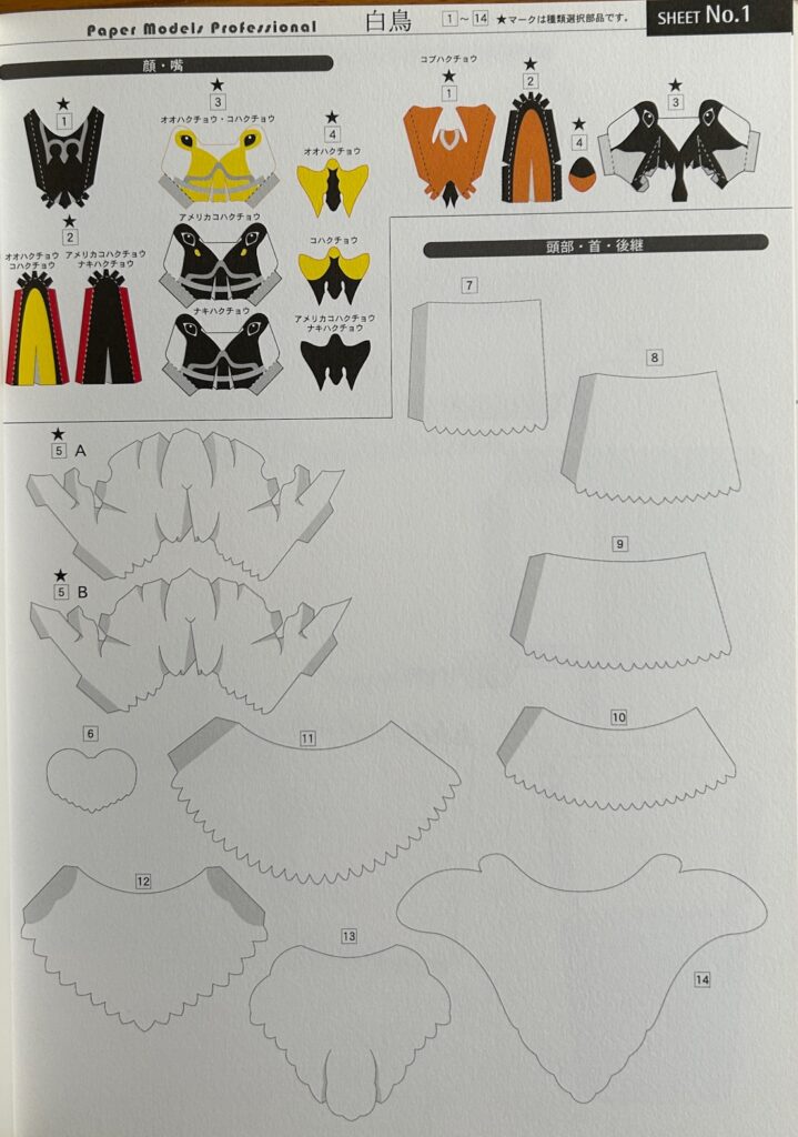このペーパークラフトBOOK一冊から1羽を作れます。
