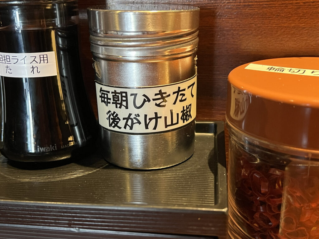 キング軒では山椒を自席で振り掛けながら食べることが推奨されています。