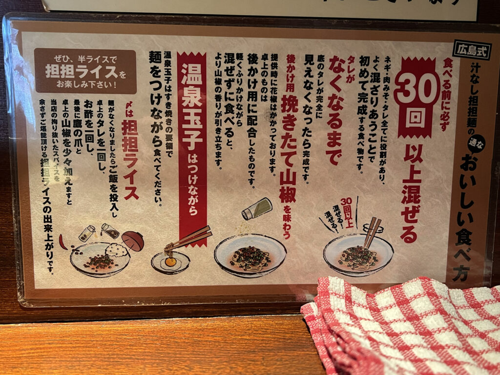 自席には汁なし担担麺の食べ方が書かれているので予習しましょう。