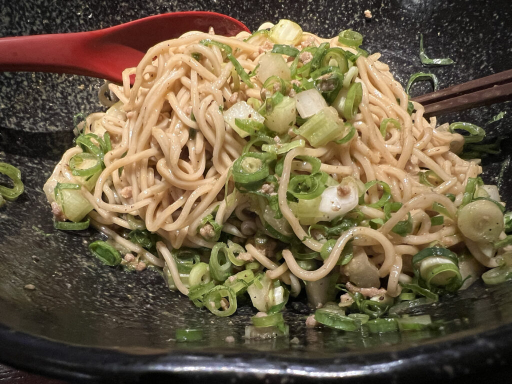これを30回以上しっかりと混ぜることで、少量の汁が全体に行き渡って「汁なし」となるのです。