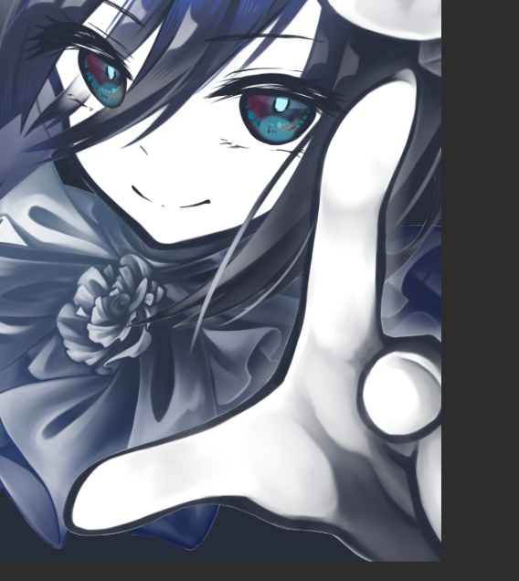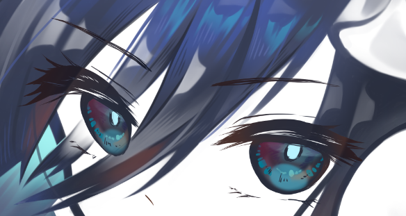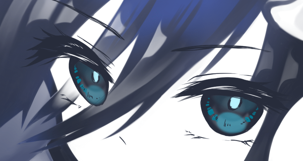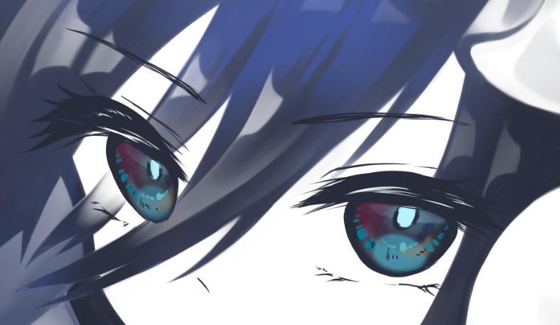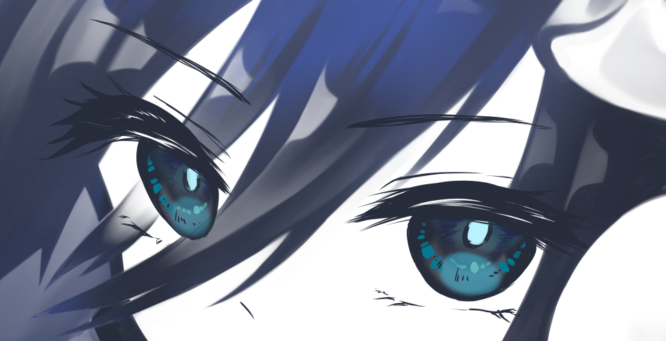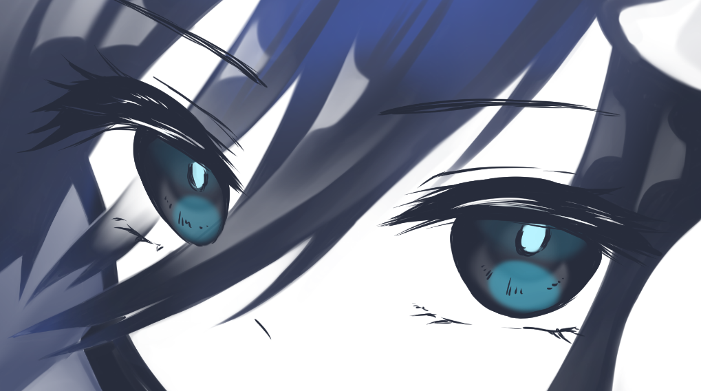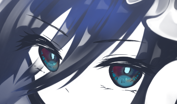 瞳孔を描きました。いにしえのうつぎ曰く瞳孔は明るい水色だそうなのでそのようにします。