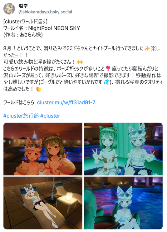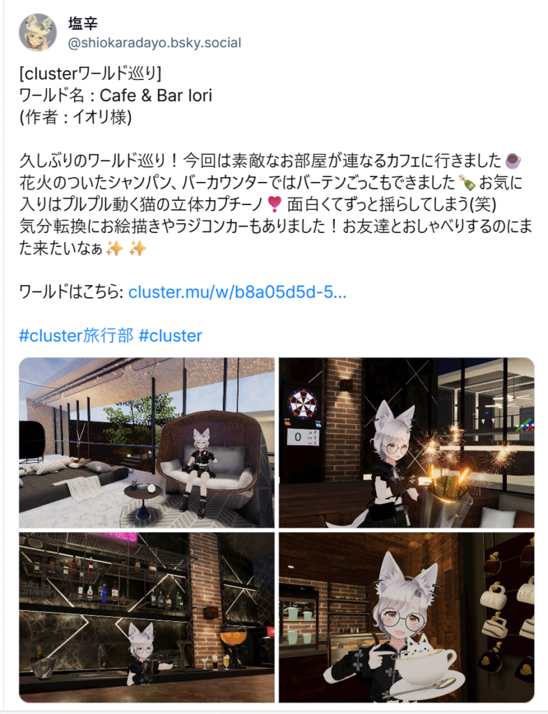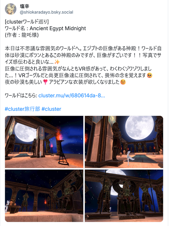 皆さまもぜひ、cluster旅行を楽しまれてくださいね♪