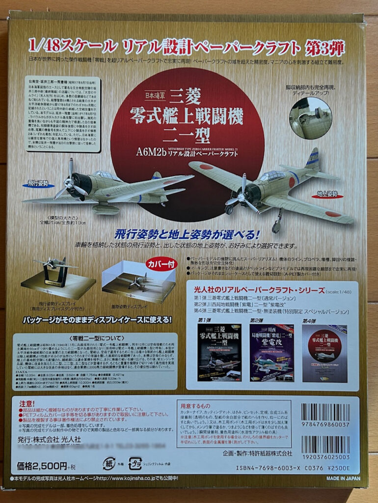 これは、一般的に「零戦(ぜろせん)」と呼称される機のペーパークラフトです。