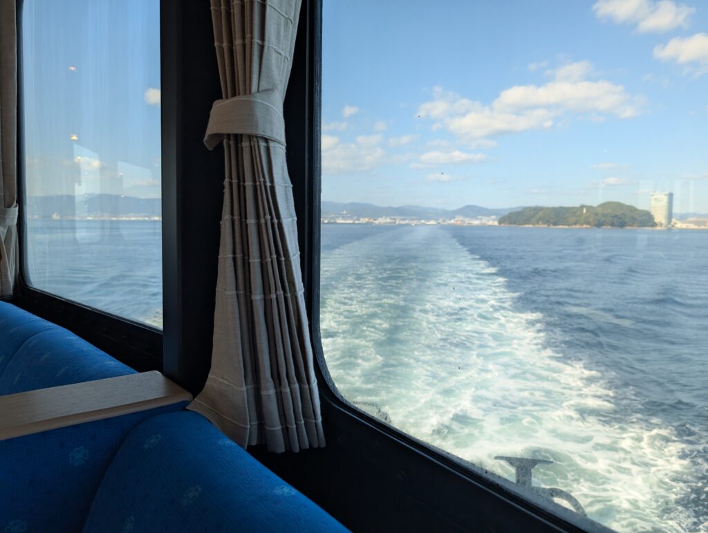 広島から松山までは2時間半もあるので、同じ席で座っているのに疲れたら船内を歩いたり違う席で休憩したりといろいろと気分転換できるのもとっても嬉しいですね!