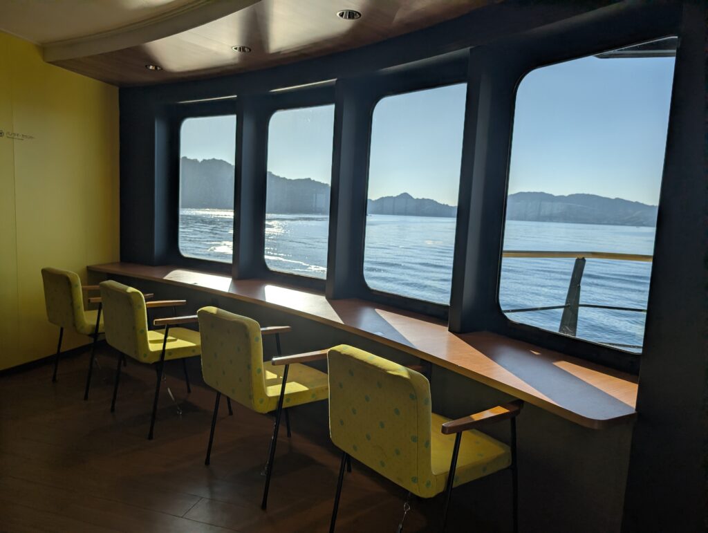 まるでホテルのラウンジのような内装と様々なタイプの座席があって、2時間半の船旅を思い思いに楽しむことができます✨