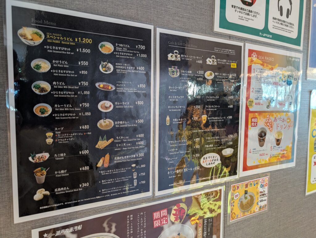 メニューに広島のがんすや大長レモネード、レモンケーキ、愛媛の坊っちゃん団子やじゃこ天、みかんジュースなど、広島・愛媛グルメがあるのも良いですよね✨