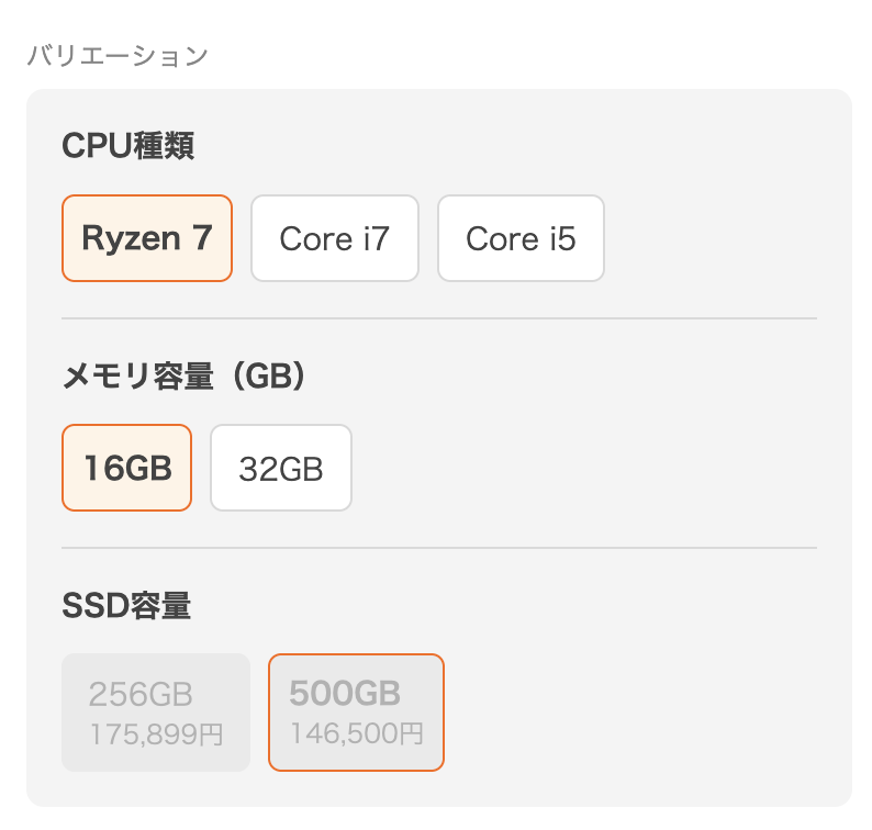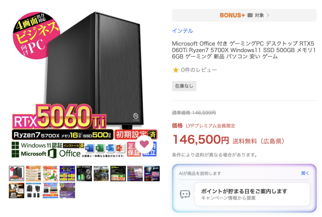 なお、私が買ったものは執筆時点で在庫切れとなっていました(私が最後の一台を買った可能性)が、「RTX5060」の方は「500GBの方が安い」というバグ価格のものが残っていました。