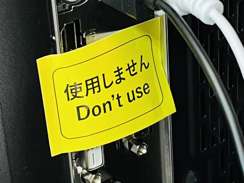 「間違ってマザーボードの方に挿す」はあるあるトラブルすぎるので、販売店がこういう「ここを使うんじゃないよ」ってシールを貼ってくれてることもあります。