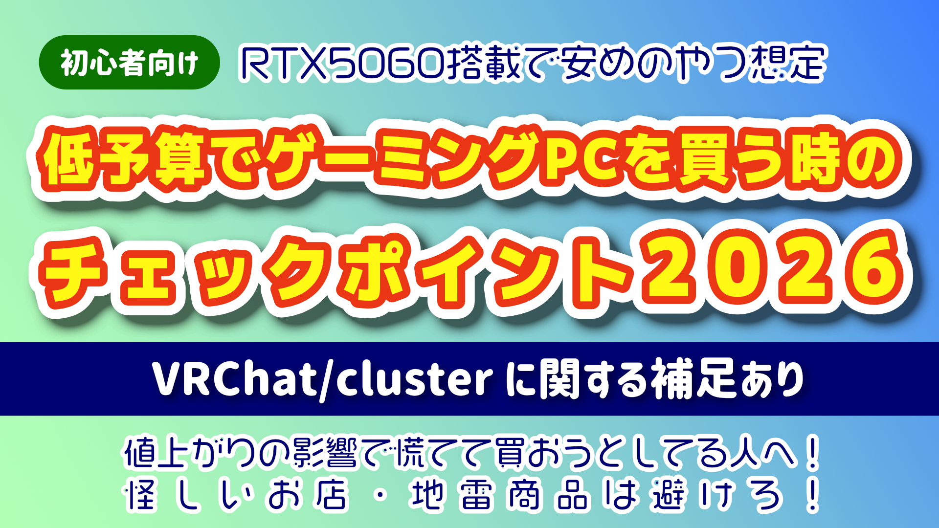 限られた予算でスペックにある程度妥協しながらも、いろんなゲームをストレスなくプレイできるPCを少しでも安く買いたいと言う初心者向けのチェックポイントです。