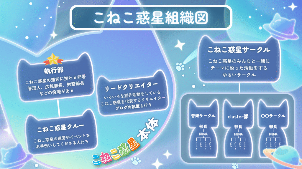 詳しくはこねこ惑星組織図のページをご覧ください。
