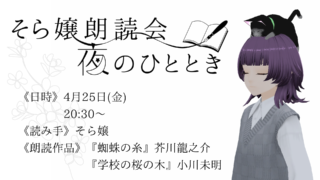 こんにちは、そら嬢です! clusterで毎月開催している「そら嬢朗読会 夜のひととき」の記録を残していくことにしました。 今回は第四夜から第六夜までです。 第四夜(8/29) 第四夜から、お話の雰囲気に合わせてワールドを変えてみる...